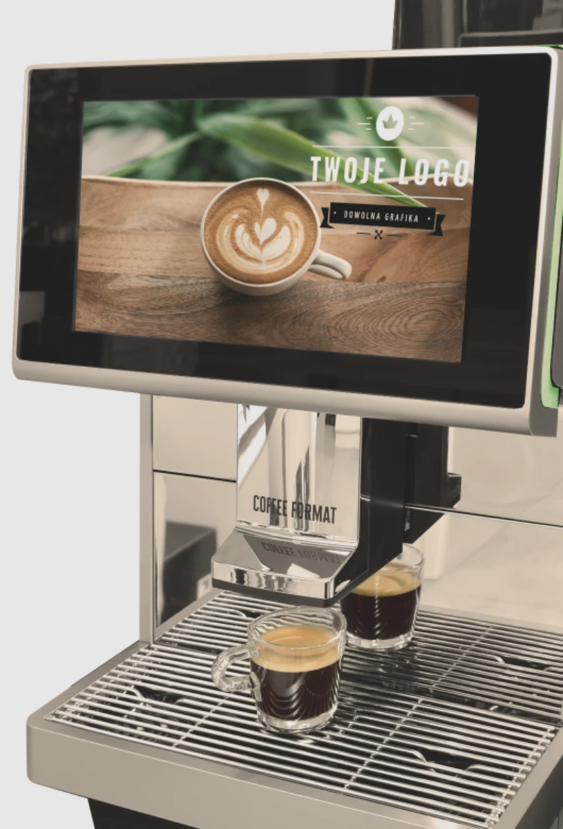 Twoje treści na urządzeniu: wgrywasz JPG (logo, menu, sponsorzy, komunikaty) — ekspres staje się nośnikiem marki tuż przy punkcie wydania.