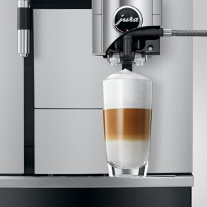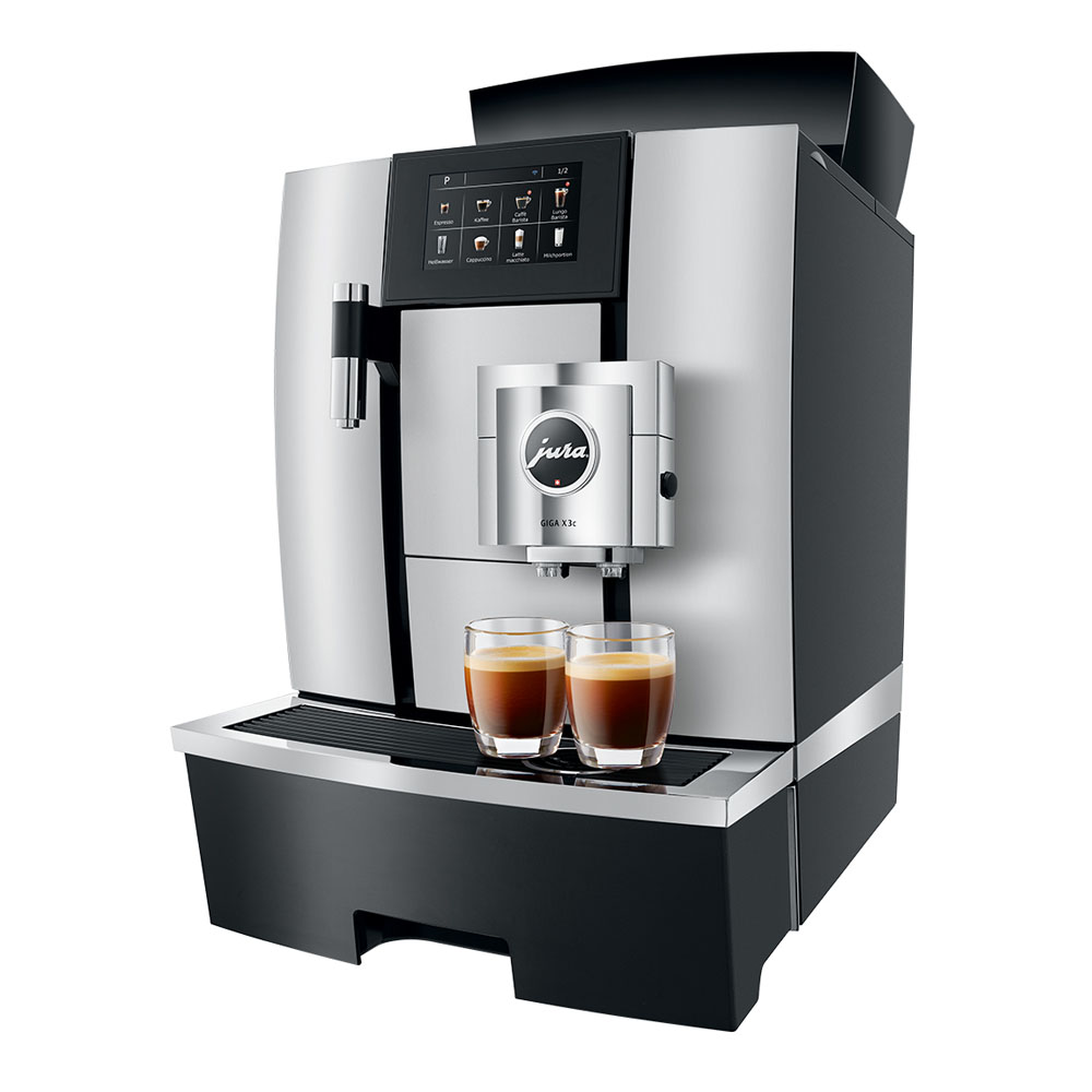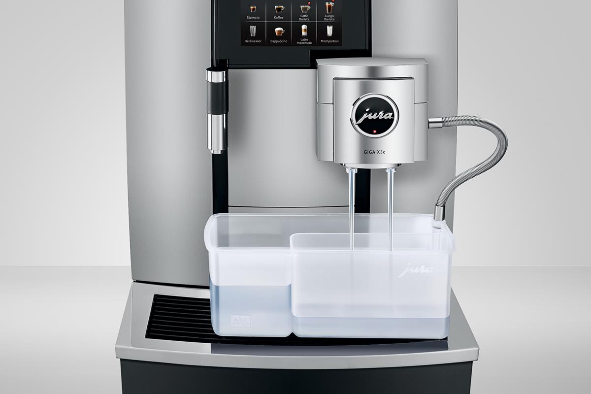 Model GIGA X3c jest wyposażony w podwójną wylewkę z regulacją wysokości o przemyślanej konstrukcji, która dzięki technologii gładkiej pianki umożliwia przyrządzanie modnych specjałów z dodatkiem mleka i pianki mlecznej. Natomiast funkcja Speed umożliwia przyrządzanie specjałów kawowych w rekordowo krótkim czasie. Model GIGA X3c, wyposażony w stałe podłączenie wody, optymalnie pokazuje swoje mocne strony we wszystkich stałych miejscach. Wysiłek wkładany w ponowne napełnianie jest zredukowany do minimum dzięki dużemu pojemnikowi na ziarna kawy o pojemności 1 kg, pokrywie chroniącej aromat oraz opcjonalnemu zestawowi odprowadzania fusów / zestawowi odpływowemu tacy ociekowej.