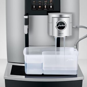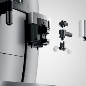 Konserwacja ekspresu GIGA X3c jest tak samo prosta, logiczna i intuicyjna, jak jego obsługa. Oryginalne produkty do konserwacji JURA oraz zintegrowane programy płukania i czyszczenia za naciśnięciem jednego przycisku dbają o higienę, posiadającą certyfikat TÜV. Również czyszczenie systemu mlecznego wyróżnia się przemyślaną konstrukcją. W pełni zautomatyzowane i uruchamiane za dotknięciem wyświetlacza gwarantuje zachowanie perfekcyjnej czystości w kontakcie z mlekiem. Masywną podwójną wylewkę da się rozłożyć paroma ruchami. Umieszczone z przodu wylewki wyloty przewodów na mleko są łatwo dostępne i w razie potrzeby można je wymienić w bardzo prosty sposób.